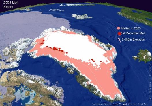 Because it is located so far from the poles, the Greenland ice cap is melting faster than the north polar ice cap or the Antarctic ice cap, and this melting will have a more immediate effect on global sea level rise than the melting of the other two ice caps. So just how big of an effect will it be, and when will a sea level rise of ten feet occur, which would obviously be catastrophic for cities like Shanghai, Miami, and New York?